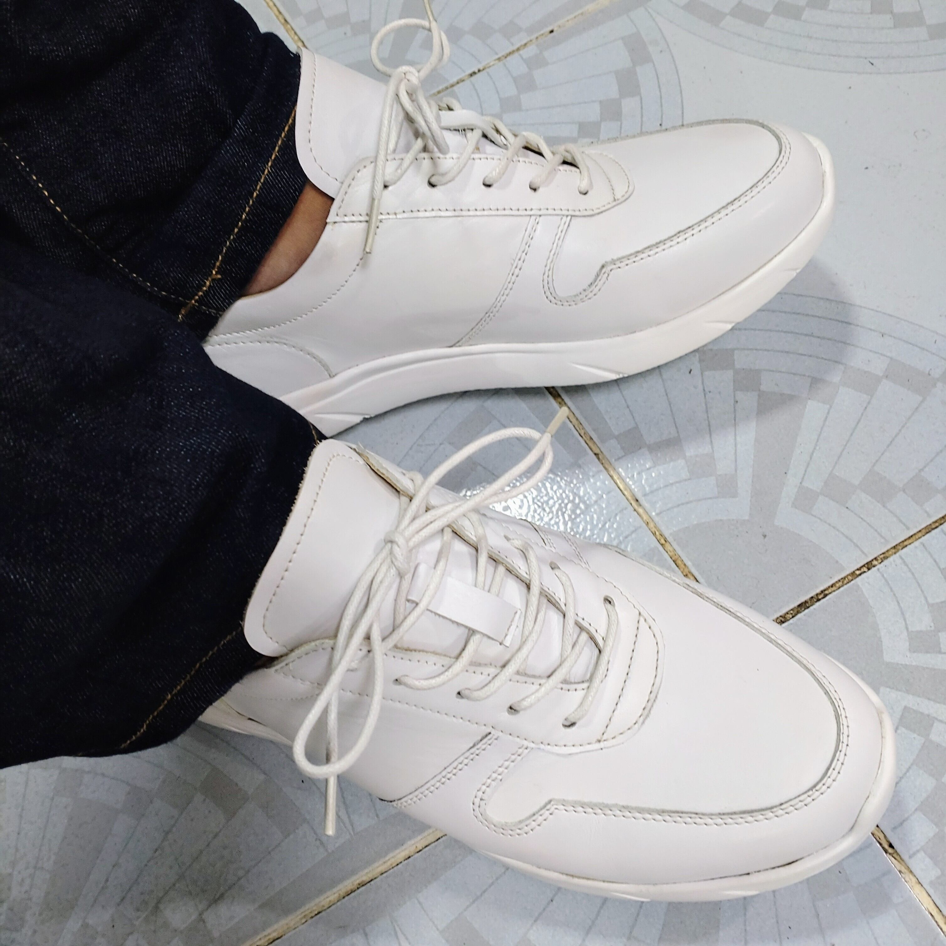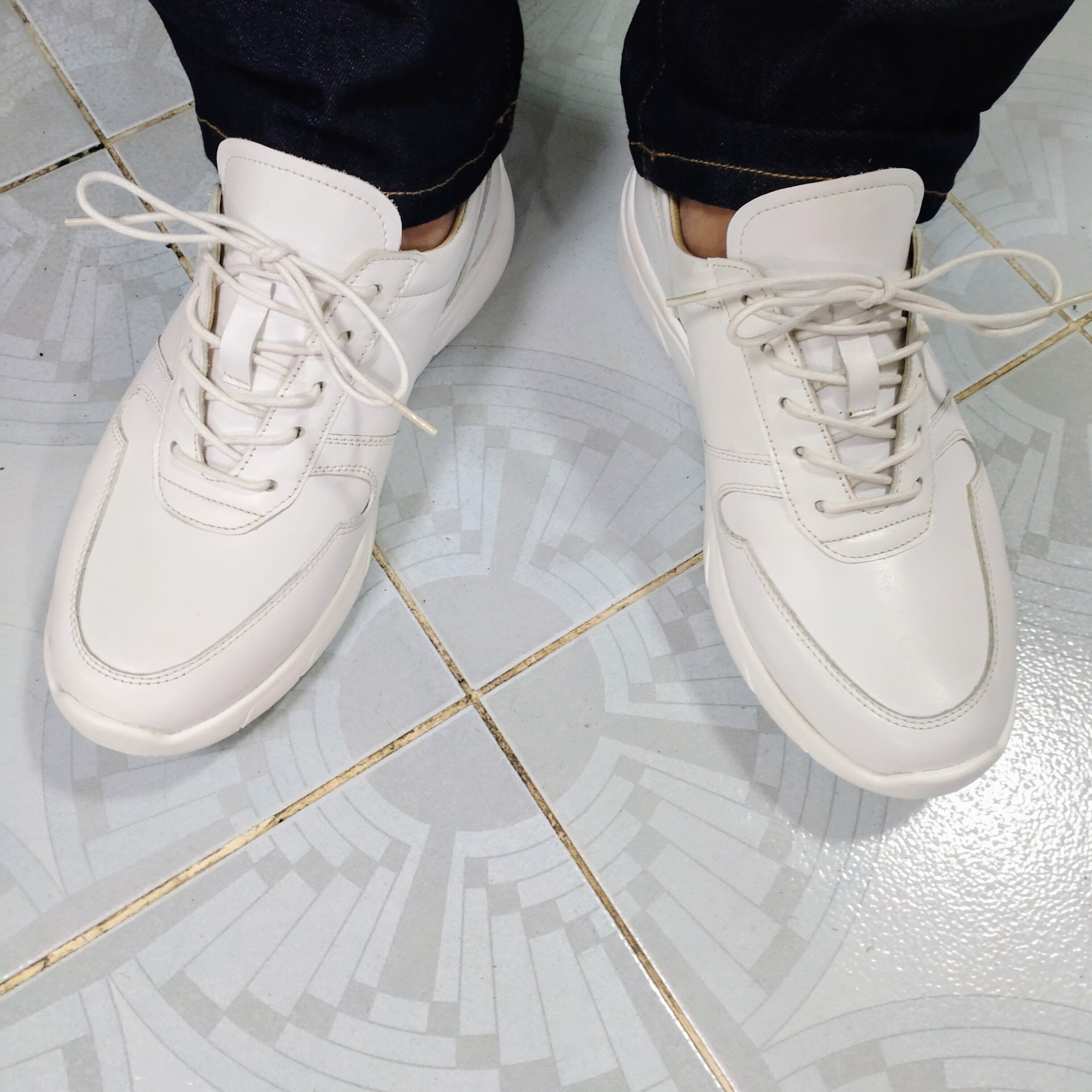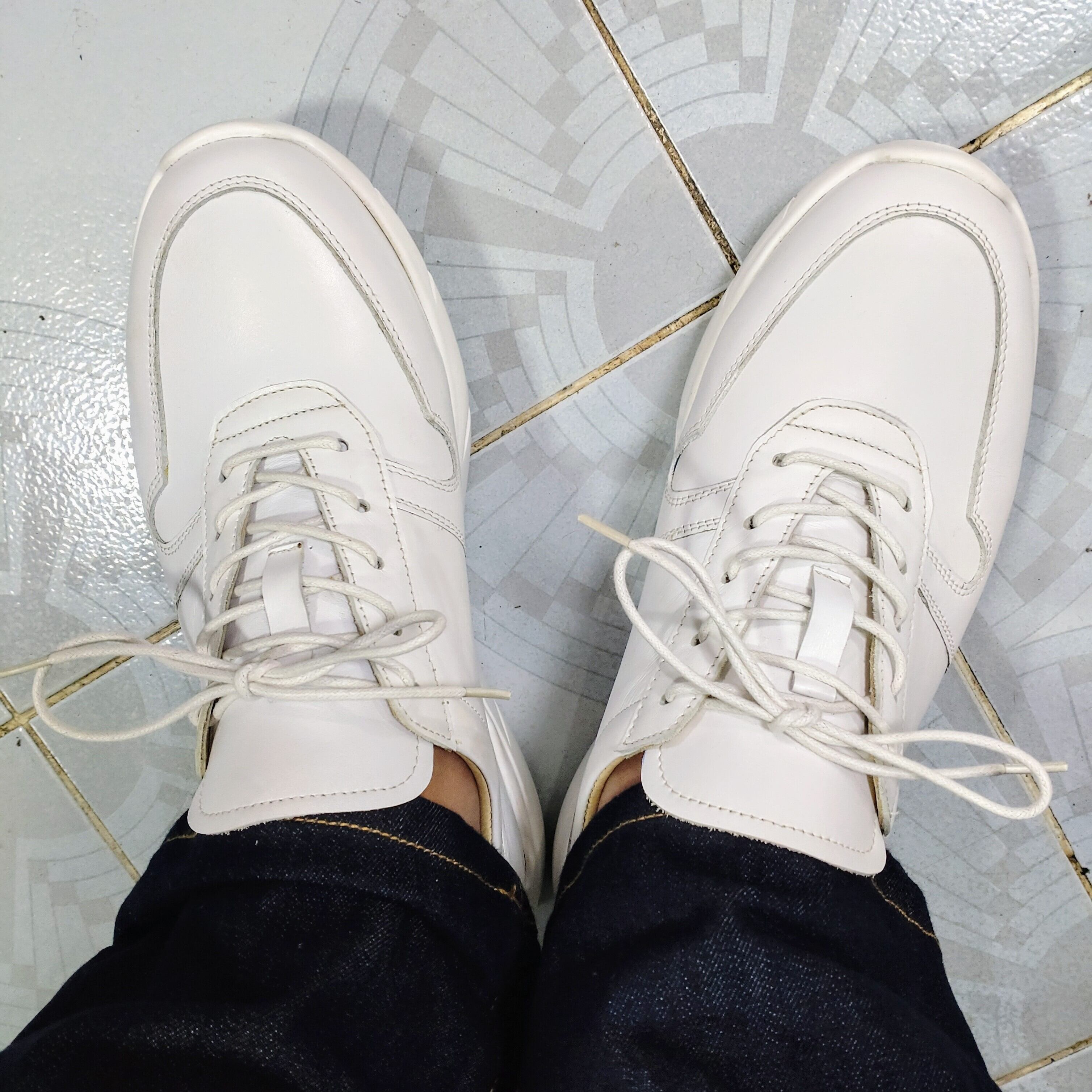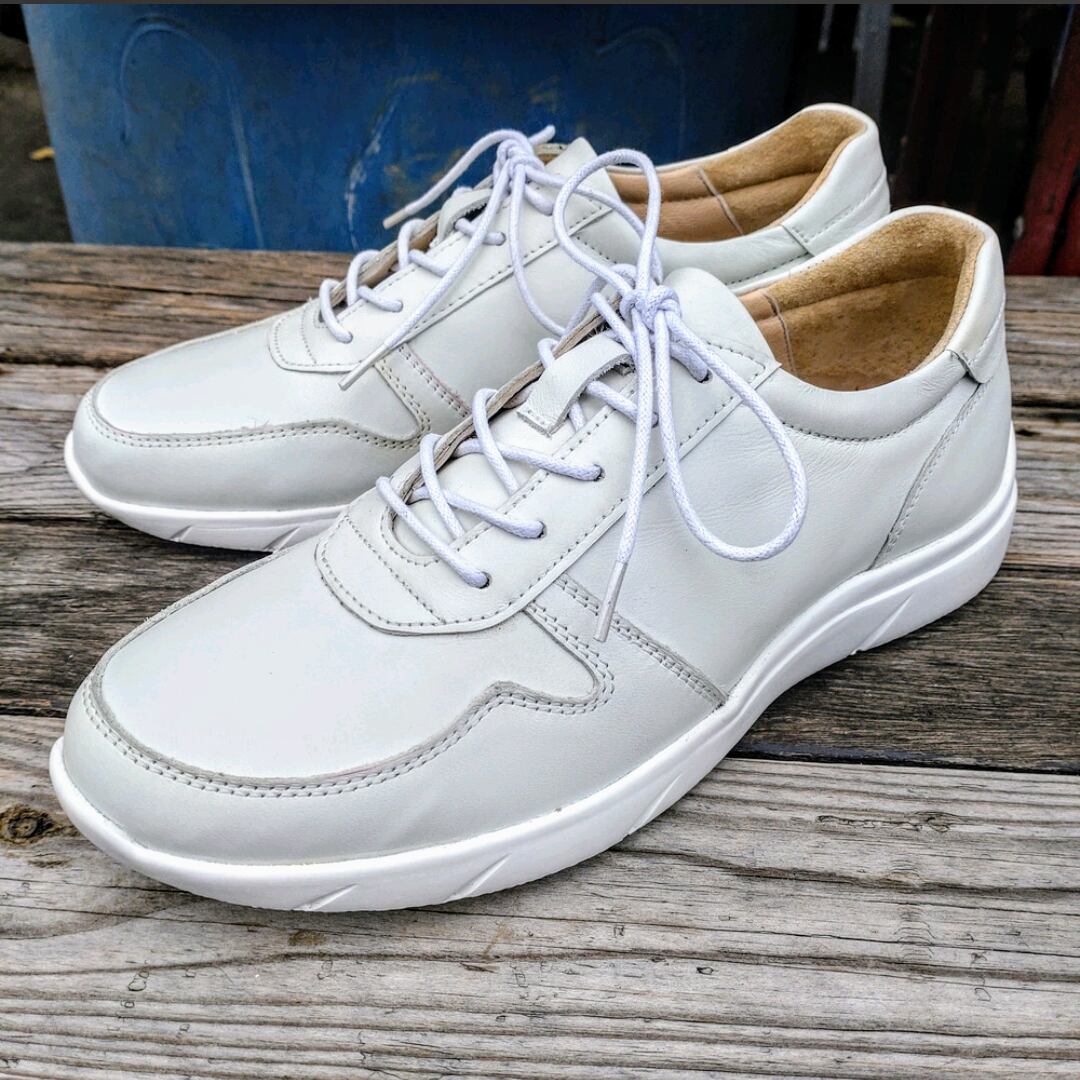 落ち着いたクールな色合いのホワイトレザーを使用しビジネスでもカジュアルでも履ける一足です。ソールはラバーを使用し音も静かで滑りにくくなっております。また柔らかいインソールを採用しているため足に負担をかけない作りです。