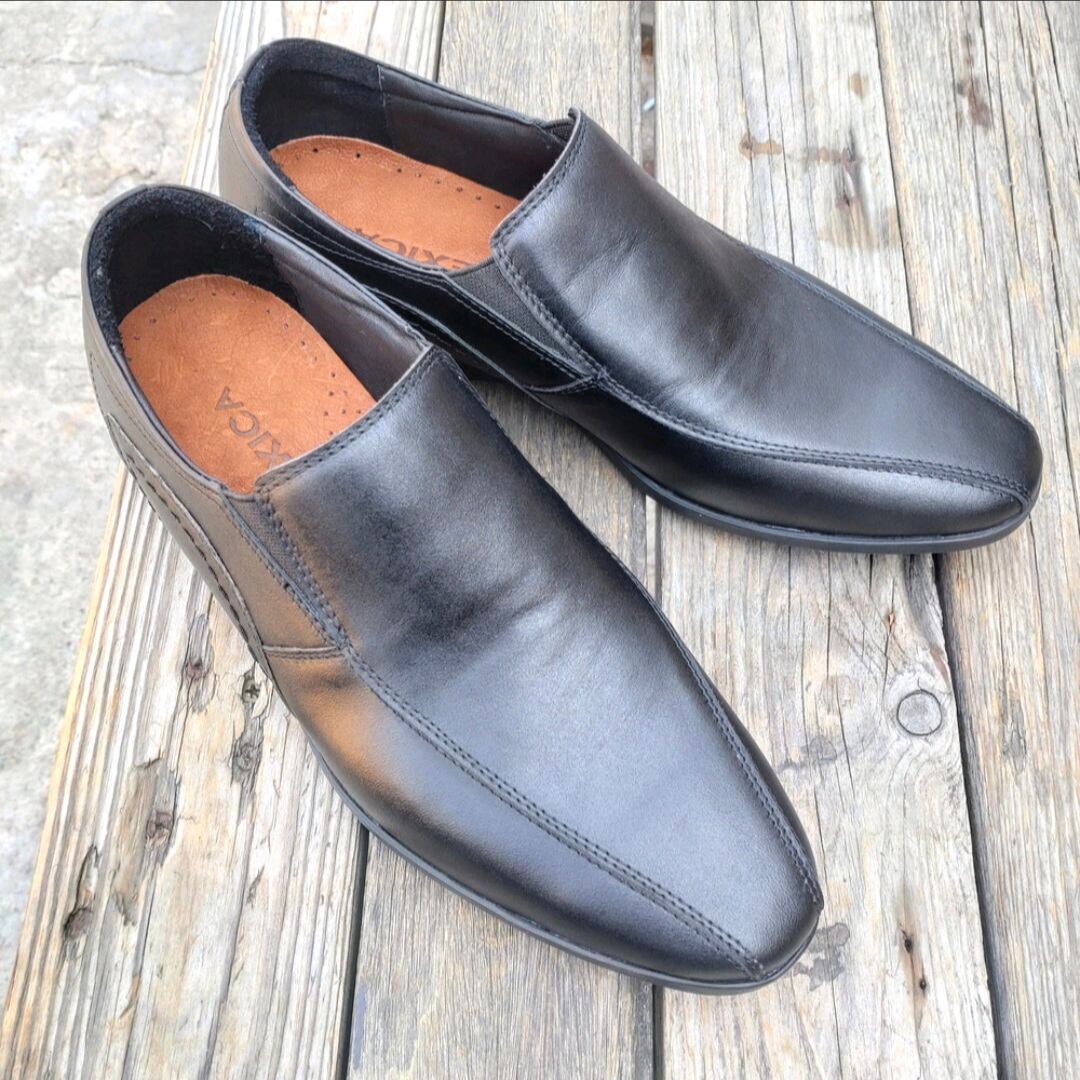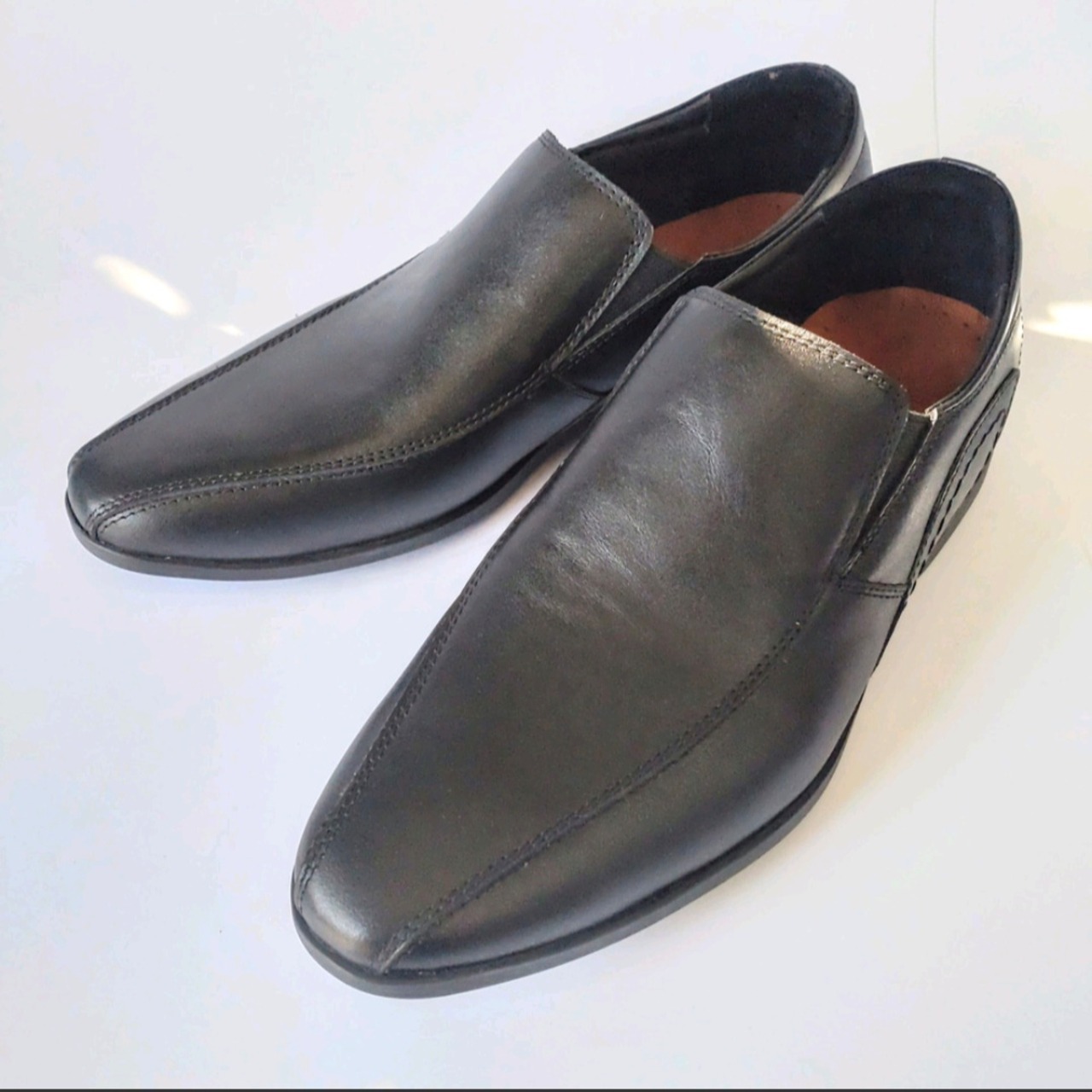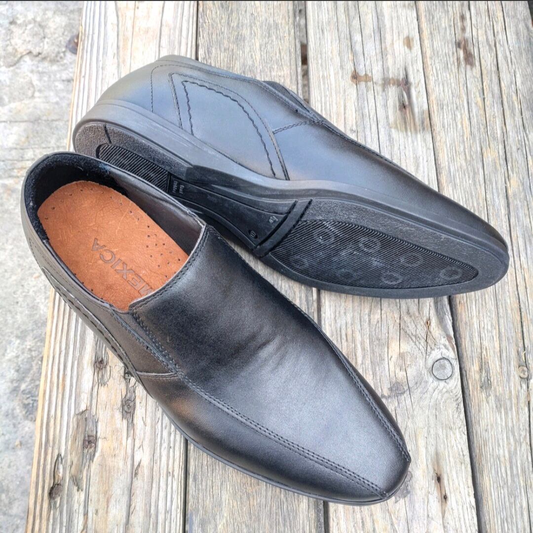 Mexica luxury メンズ本革レザー プレーントゥスリッポン 定番ブラック サイドステッチ仕様 伸縮性のゴムストレッチを採用し伸びて脱ぎ履き楽なビジネスシューズです。