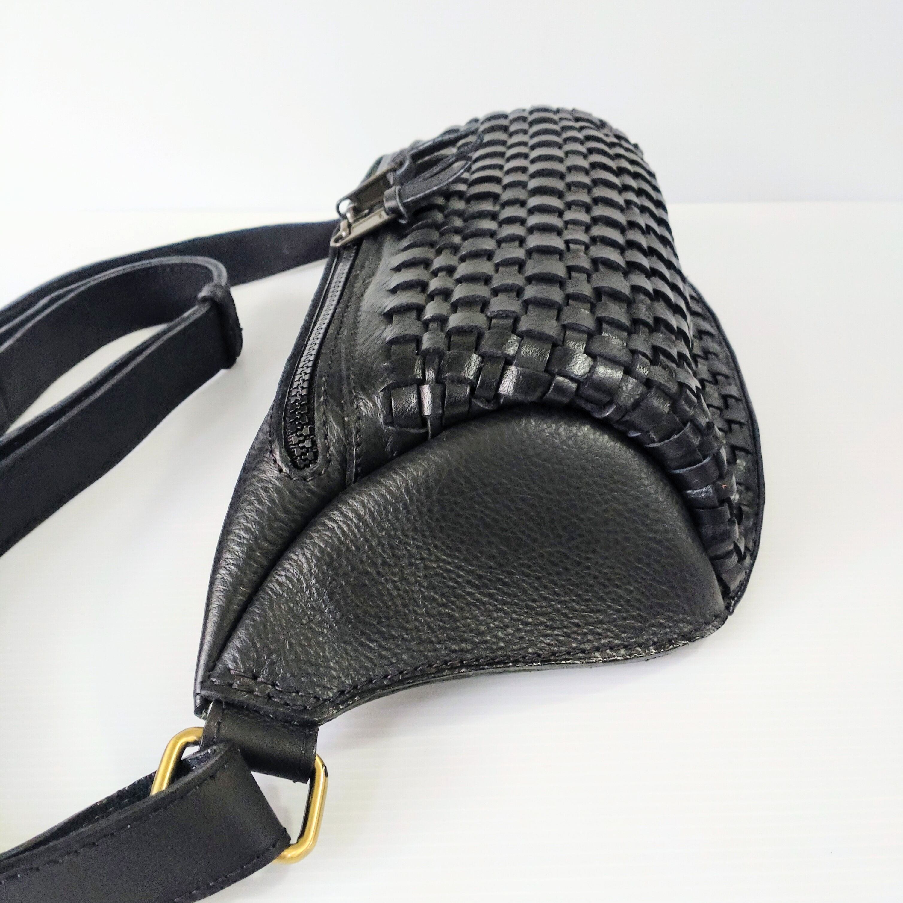 ★本革◇編み込みバッグ男女兼用◇シンプル◇ボディバッグ◇ショルダーバッグ◇ブラック