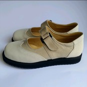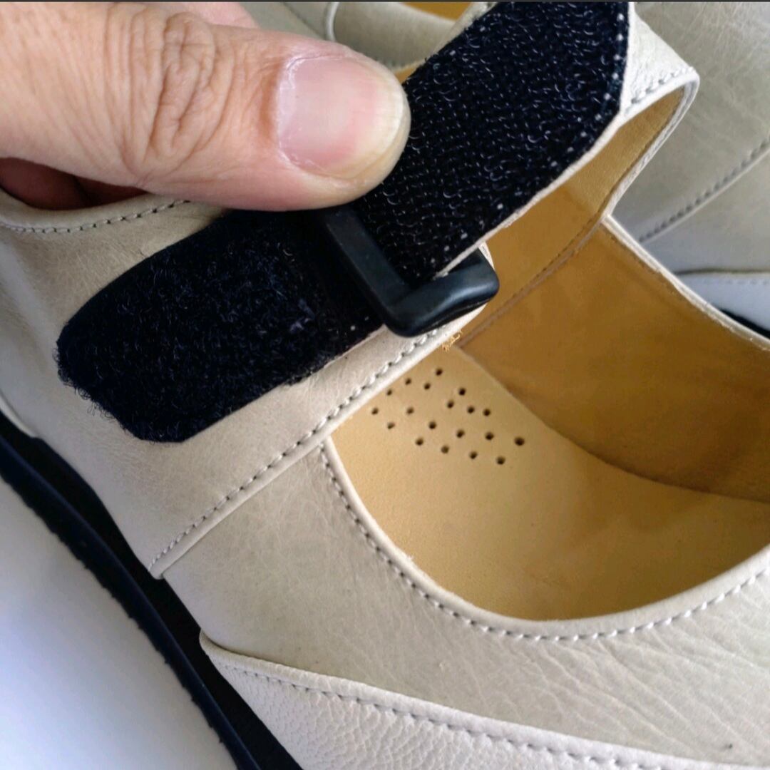 素材がやわらかく、履き口にもマジックテープのベルクロを仕様し幅広の方でも履きやすい作りとなっています。