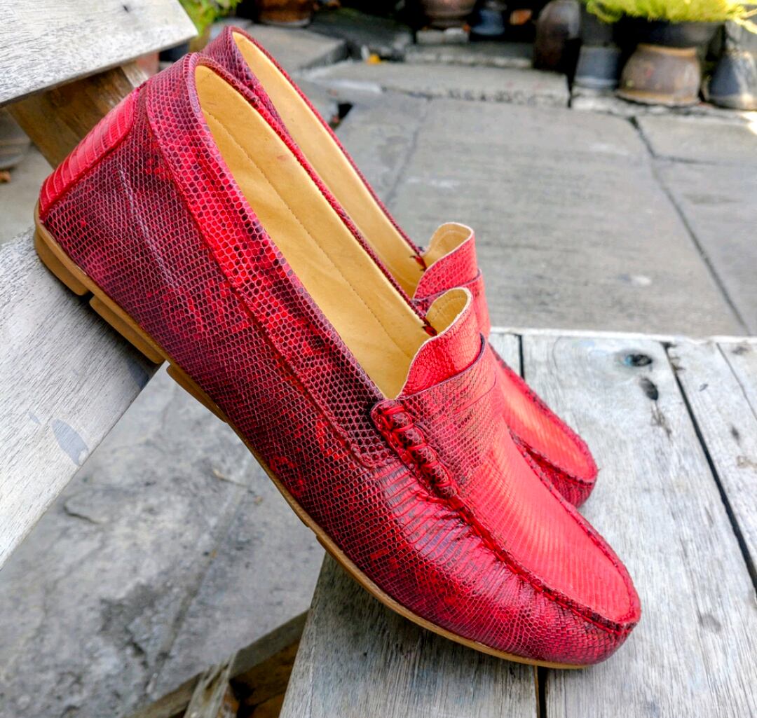 在タイのお客様からのオーダーメイドでリザードレザーのローファードライビングソール仕様を製作いたしました。