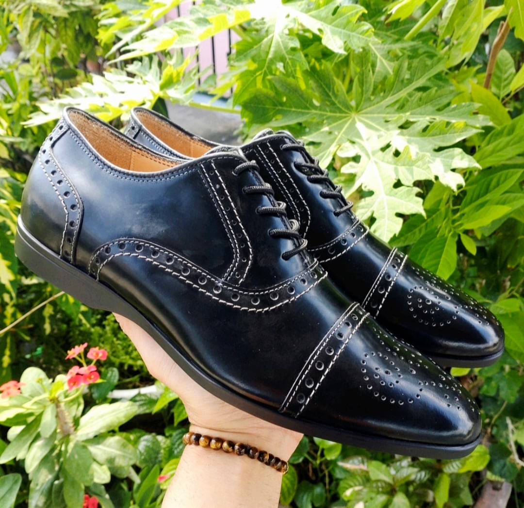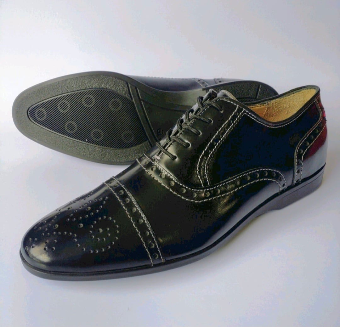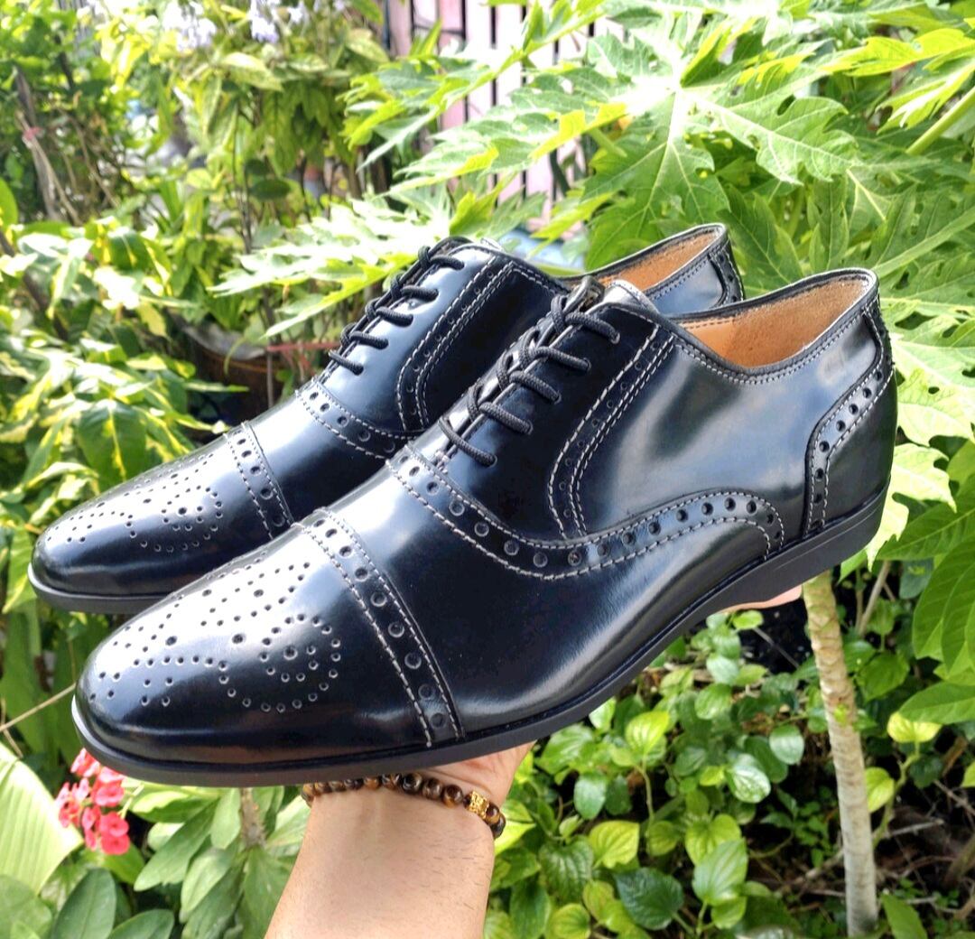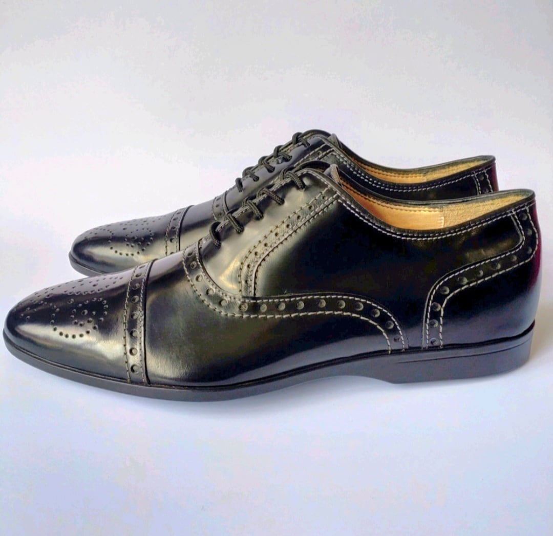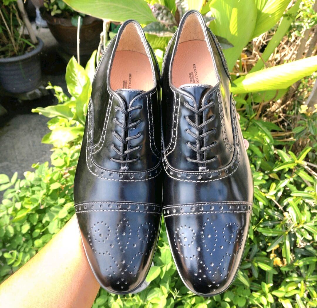Mexica luxury メンズ本革レザー ウイングチップ メダリオン装飾 ブラックレザー ラバーソール仕様