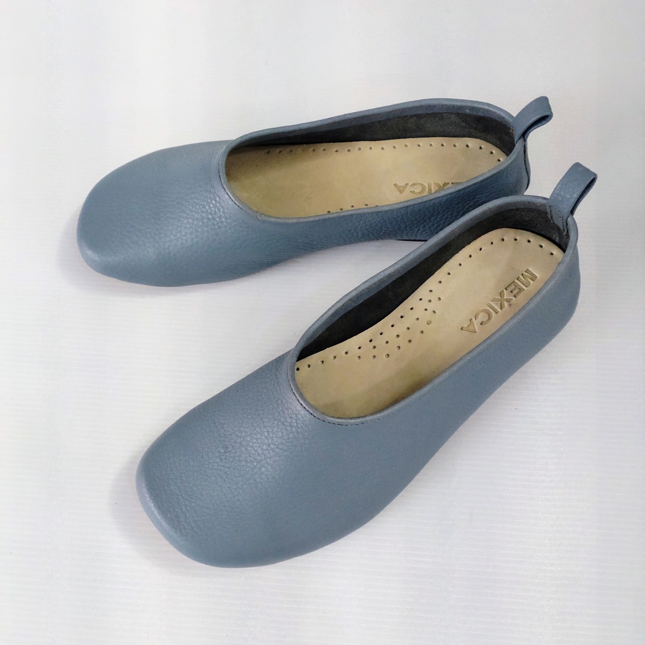 Mexica shoes 新作ペタンコシューズを製作致しました。【バレエシューズ フラットシューズ ルームシューズ ブルーグレーカラー】