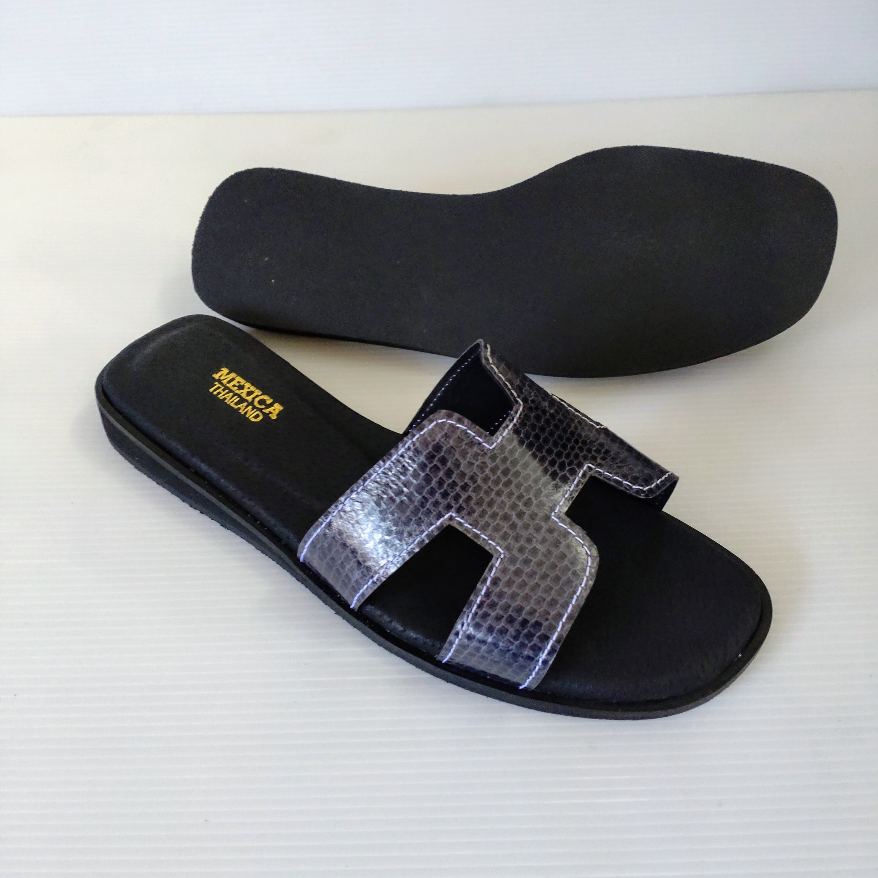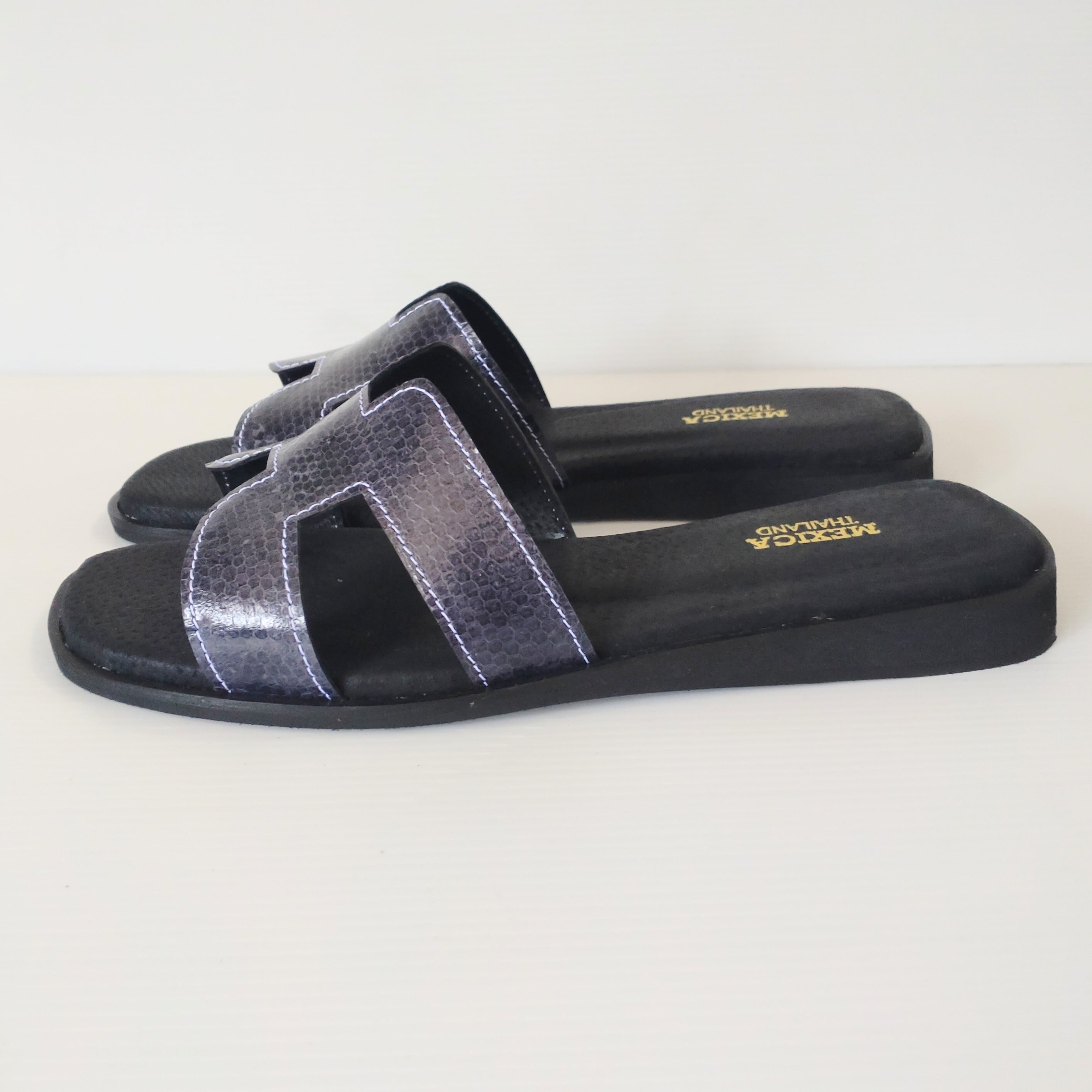 Mexica shoes 新作サンダルを製作致しました。ヘビ革レザー ネイビー レディース ラバーソール