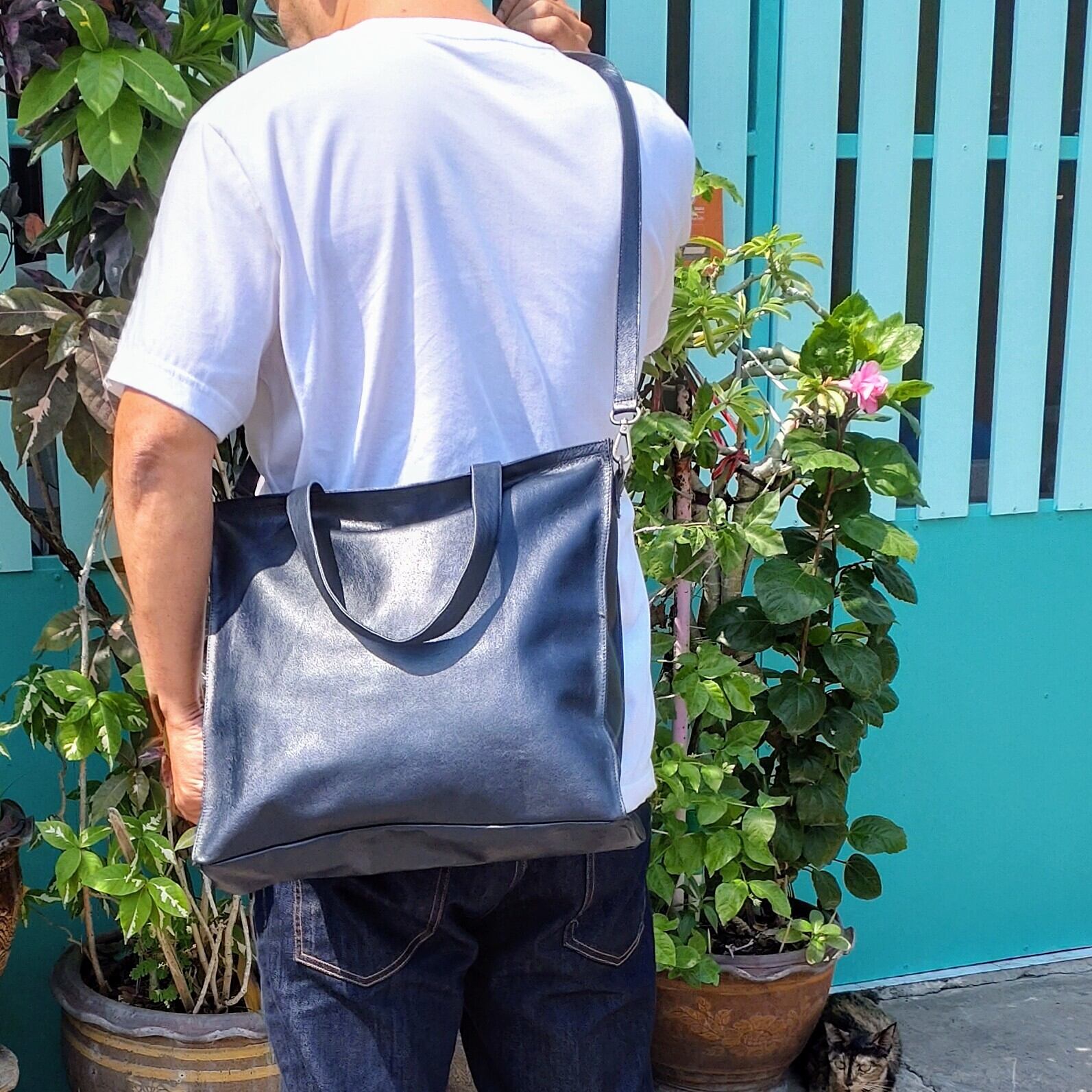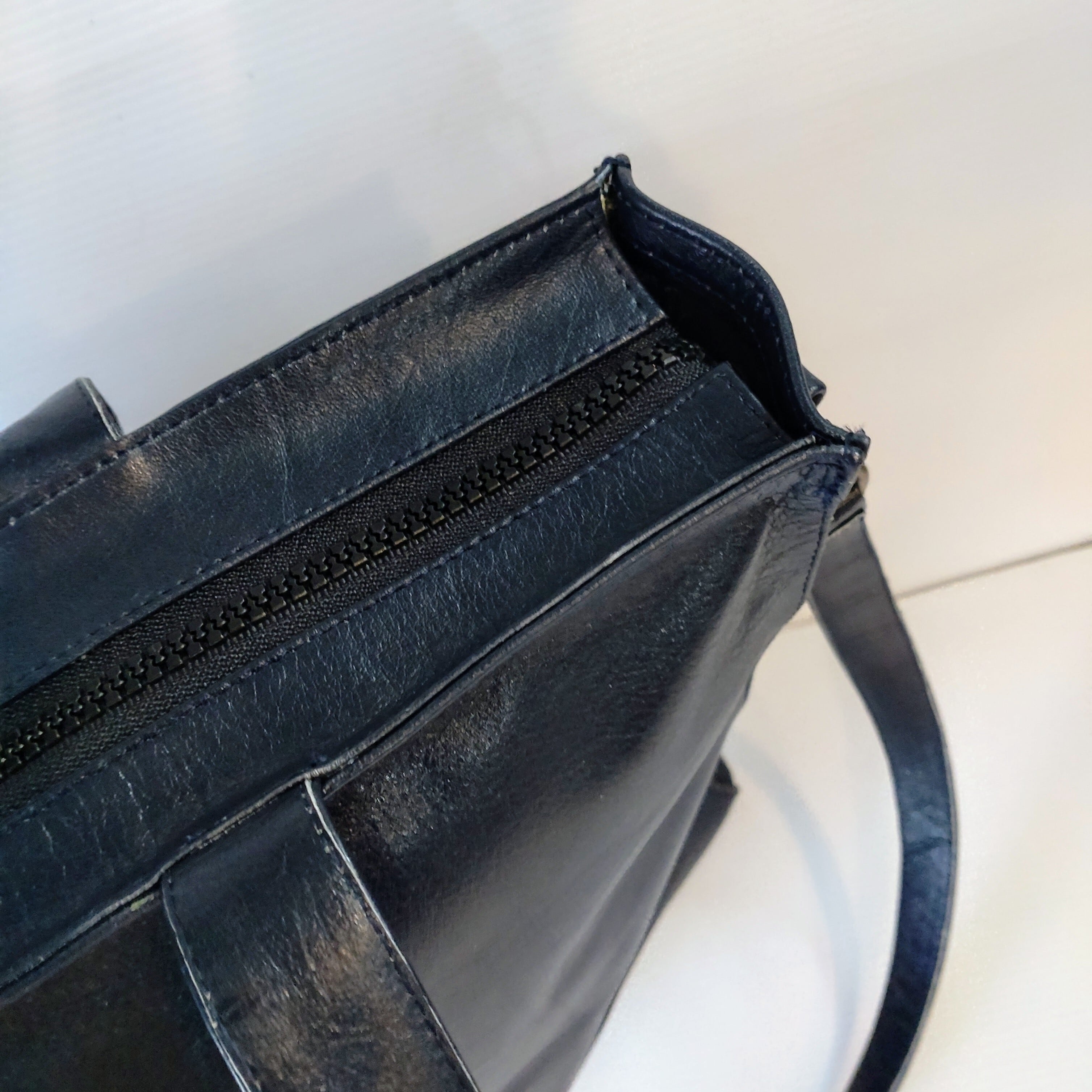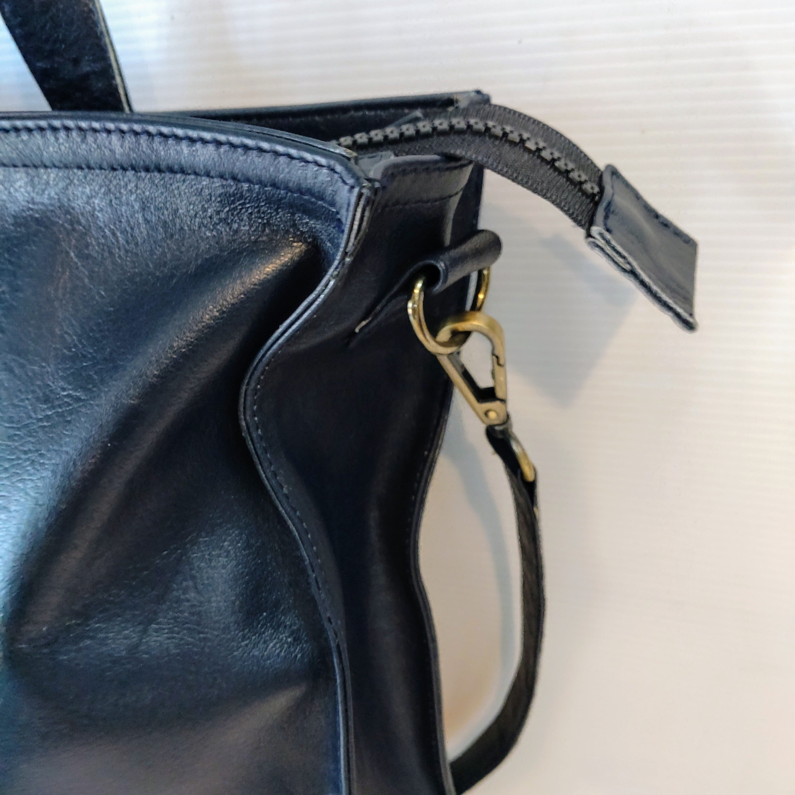 ゴツゴツ感はなくなめらかですべすべした丈夫な革です。通勤通学やちょっとしたお出かけに便利なレザーバッグです。