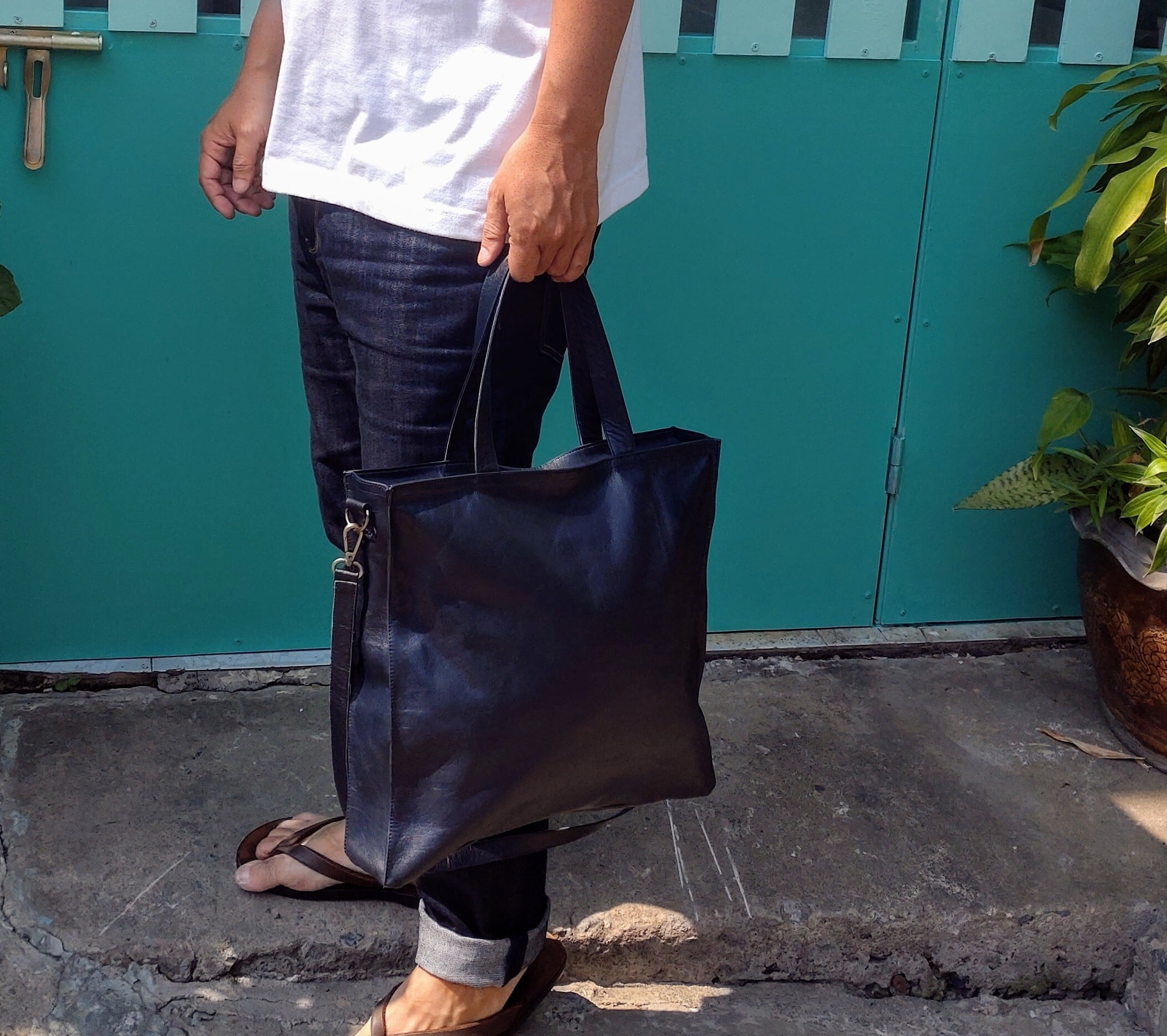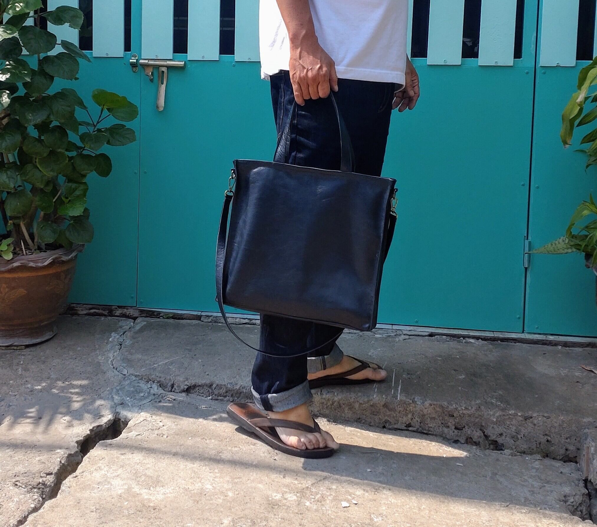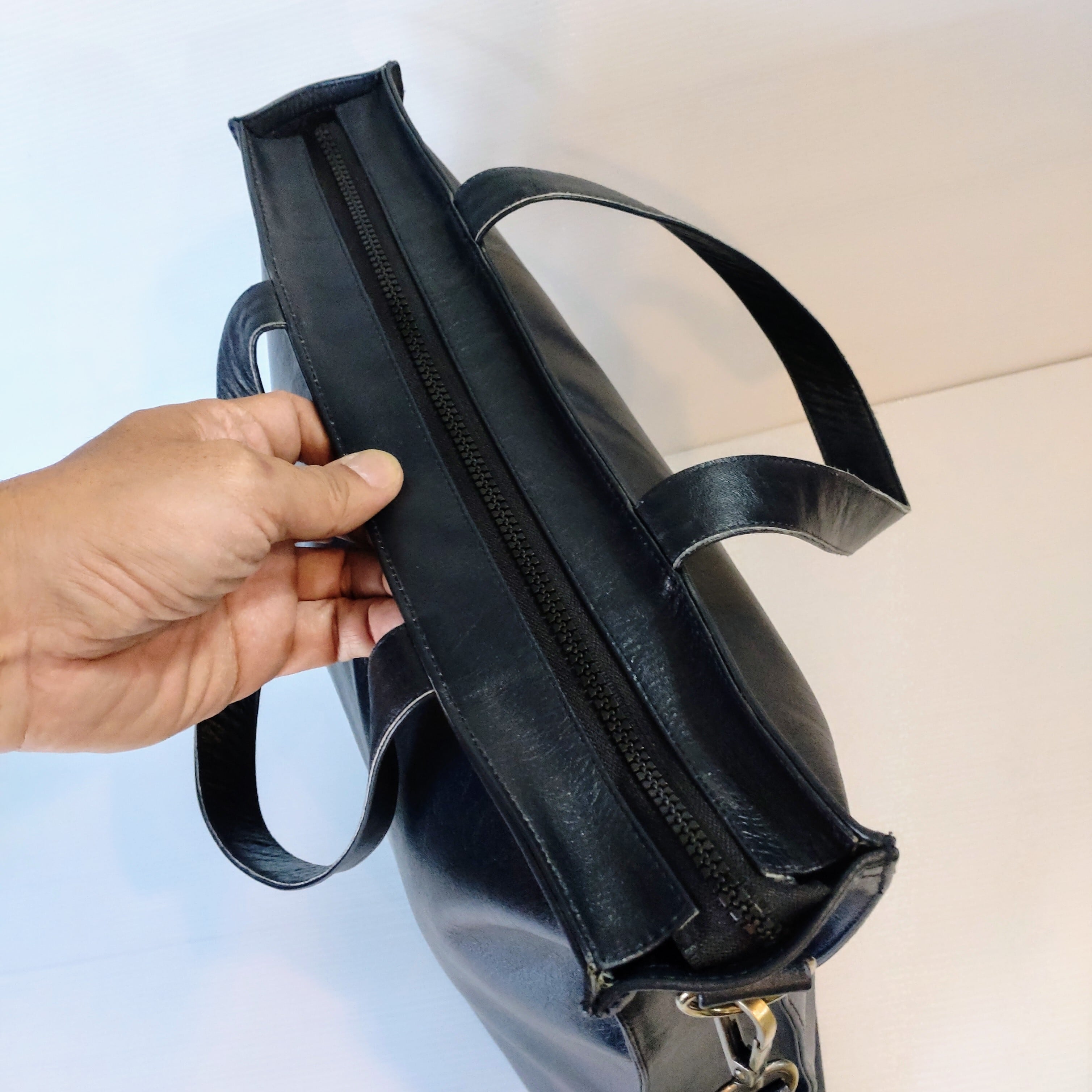 ゴツゴツ感はなくなめらかですべすべした丈夫な革です。通勤通学やちょっとしたお出かけに便利なレザーバッグです。
