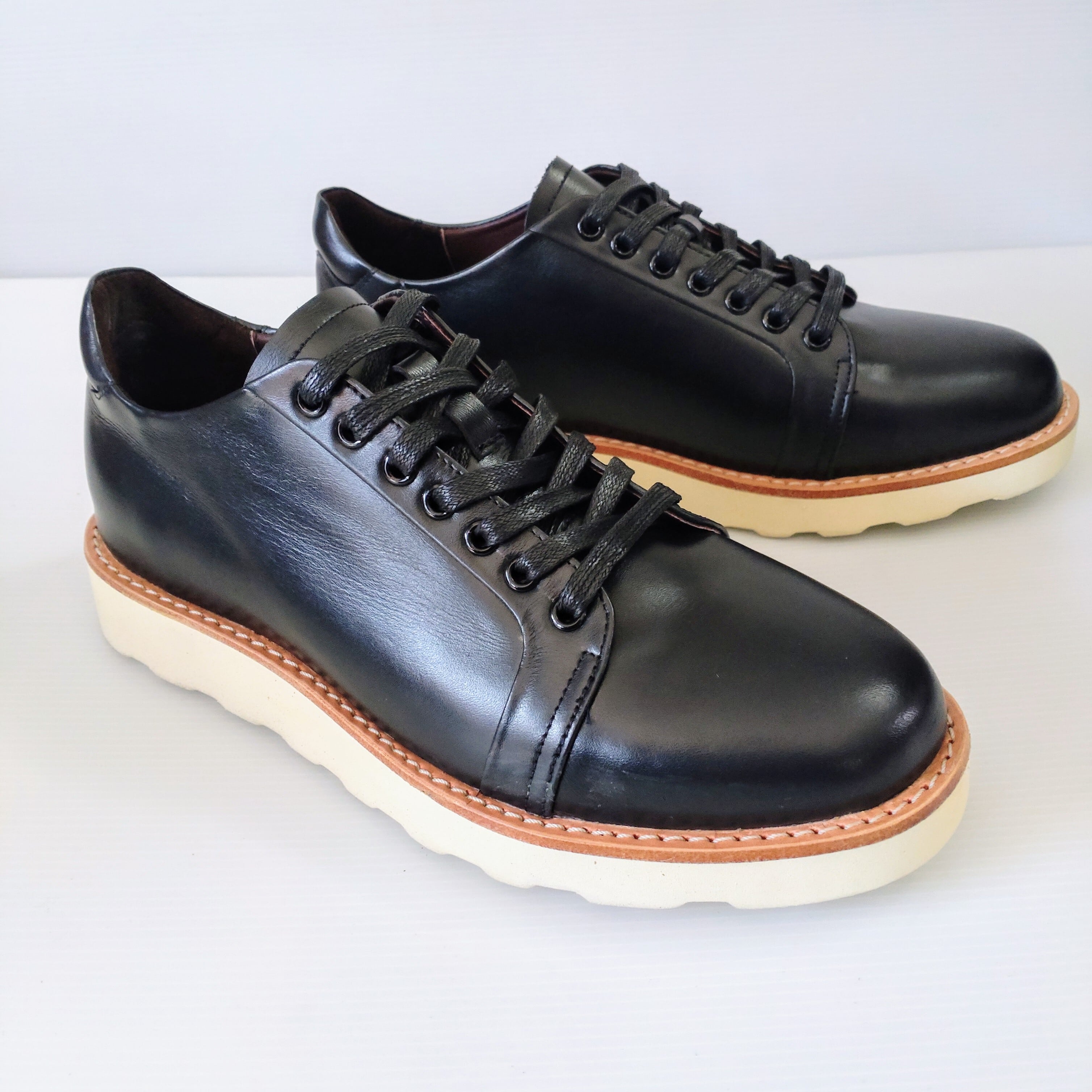 Mexica Custom-sized shoes サイズ無料調整 ★26新作本革スニーカー★厚底★本革スニーカー★シンプル★超軽量★無料サイズ調整★色変更可★ボブソール仕様★ブラック★7ホール★ | mexica shoes